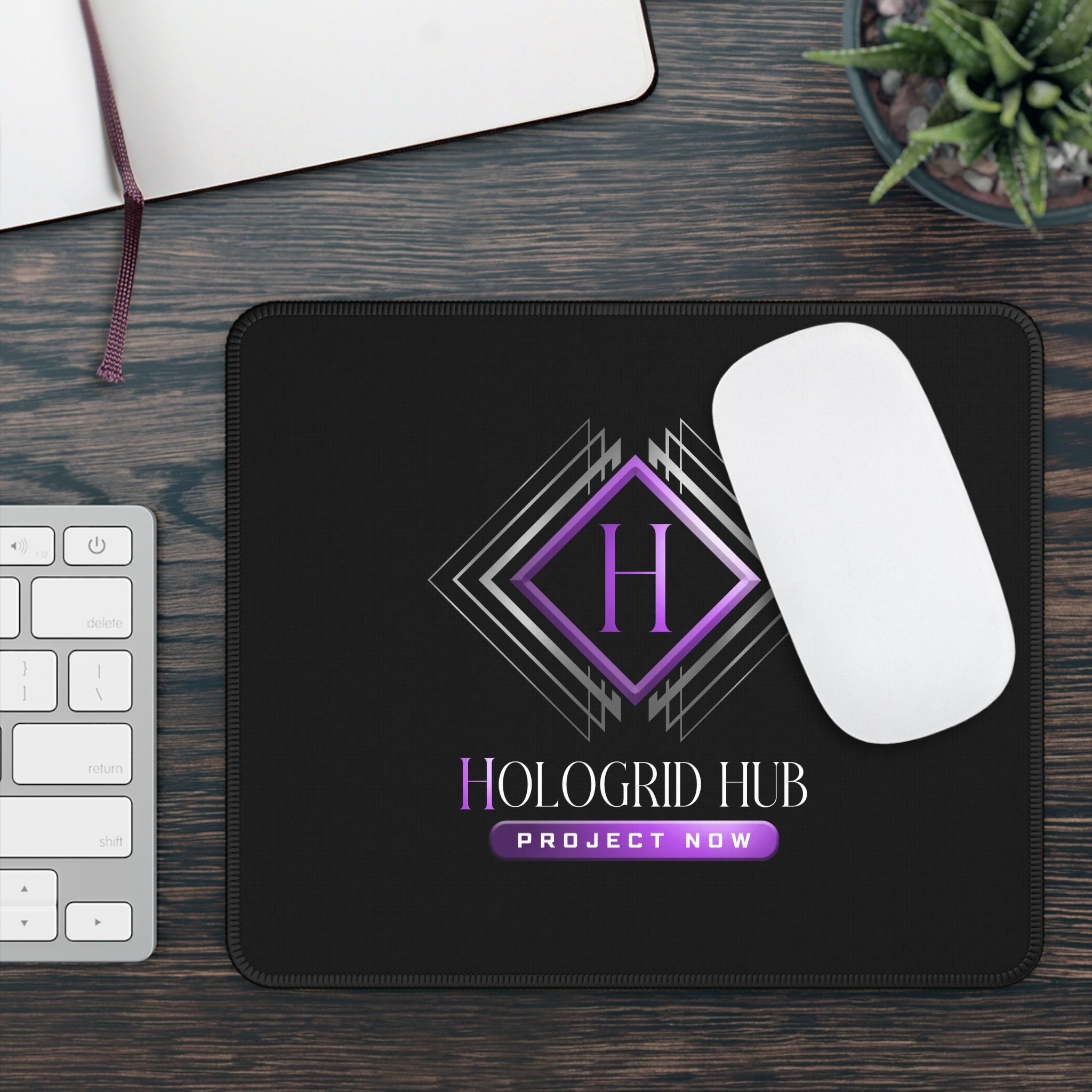 Black Custom Gaming Mouse Pad - Hologrid Hub Logo