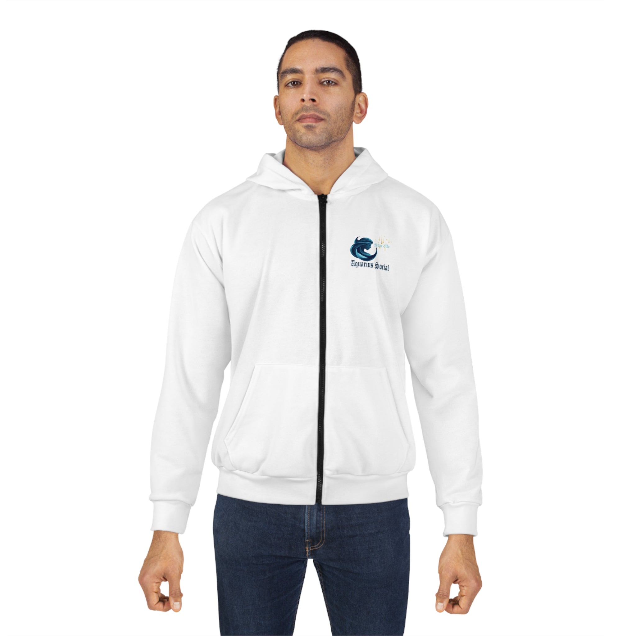 Unisex Zip Hoodie Dark Grey - Aquarius Social Logo